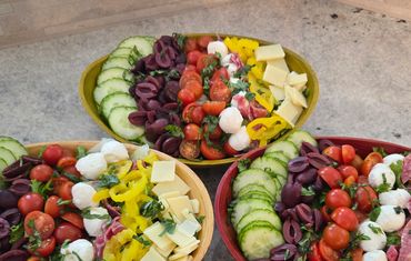Fresh Arugula, spinach, romaine, tomatoes, olives, prosciutto, pepperoncini with an Italian lemon vinaigrette